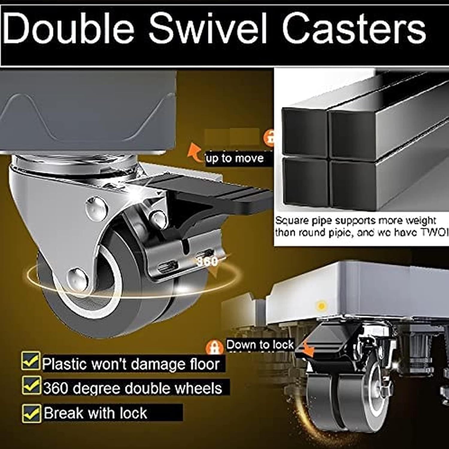 Stable Structure – Strong stainless steel frame with 4 wheels + 8 support legs for excellent stability and a weight capacity of up to 55.5 kg.